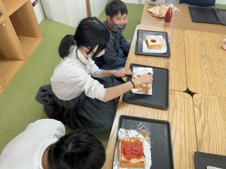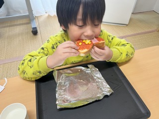 トッピングが終わったら職員がトースターで焼いて完成✨