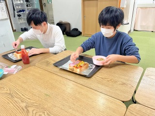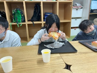 コーン、マッシュルーム、チーズの中から、自分の食べられるものを選んで作ります😃