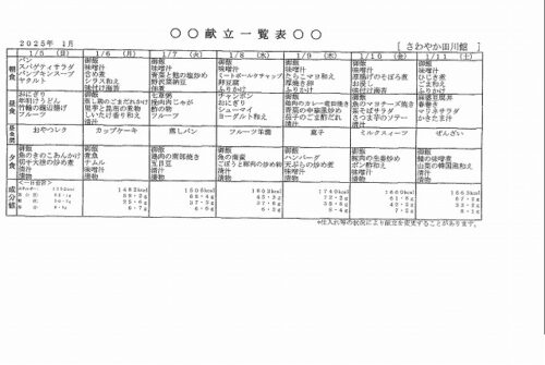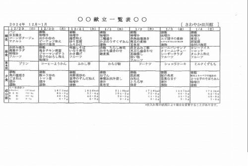 献立のお知らせ 12/22~1/11 [さわやか田川館]