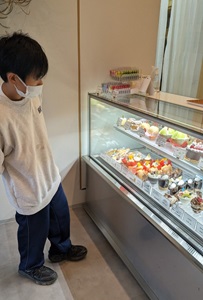 誕生日に近い利用日に、お隣のケーキ屋さん、