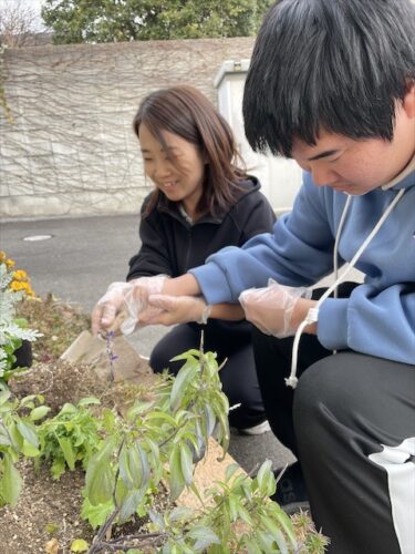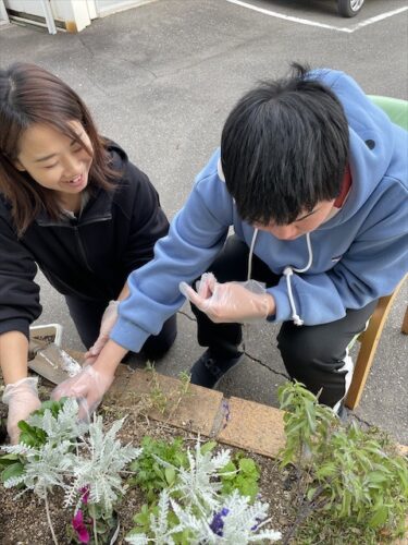 こちらの利用者様はスタッフと花壇にお花を植えて下さっています🌺