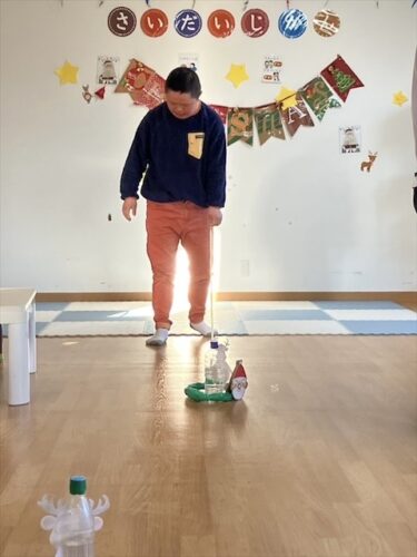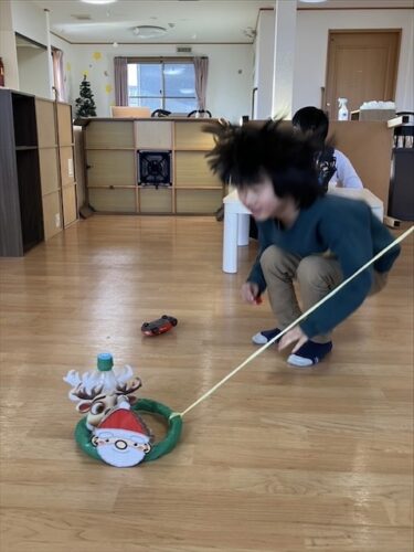 輪っかをトナカイにいれられたら倒さない様に引っ張ってスタート✨