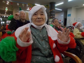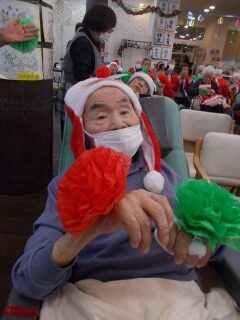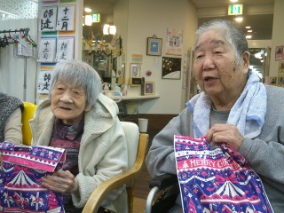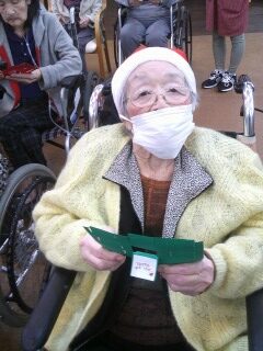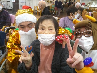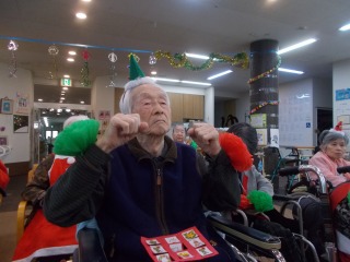 今回はクリスマス会の様子です。最初はビンゴ大会です。職員手作りのビンゴカードを皆様持ち、番号があるか真剣です🤔