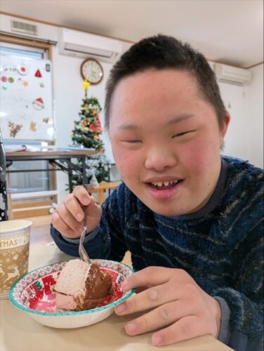 おやつにはクリスマスケーキを食べました。クリスマスケーキは、「美味しい😋」と満足して食べました。