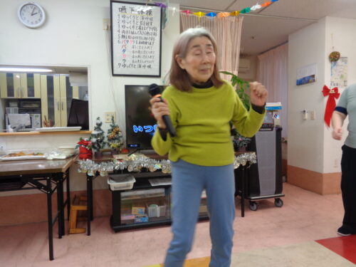 12月25日、クリスマスの昼食に引き続き、1階にてご参加できる利用者様、入居者様が