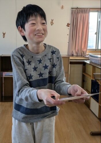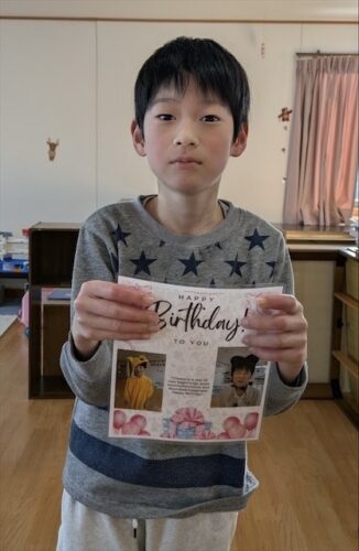誕生日会主役の児童はおやつのケーキを食べるときにバースデーカードをもらい