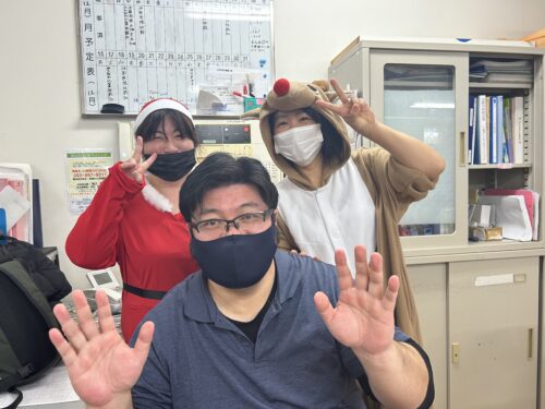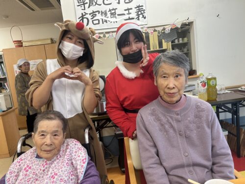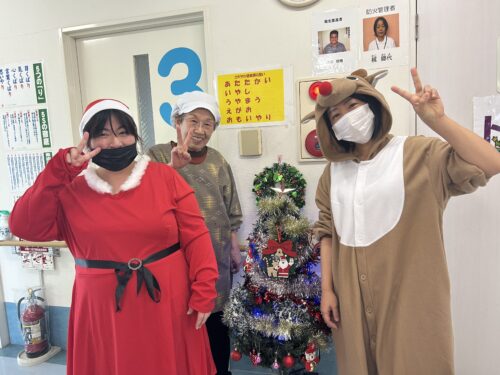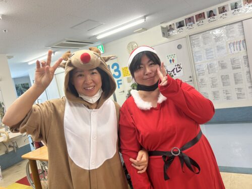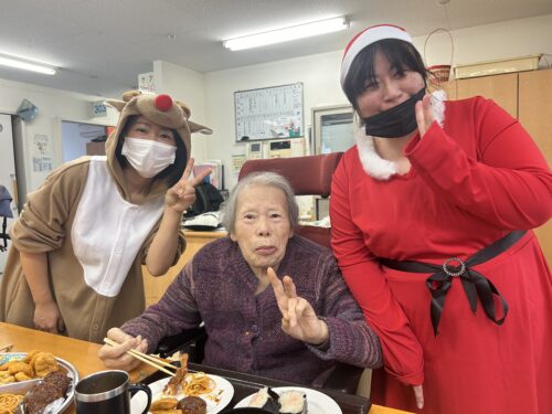 職員とボランティアの方にも来て頂き、サンタ&トナカイ姿に皆様もとても喜ばれていました(^_-)-☆