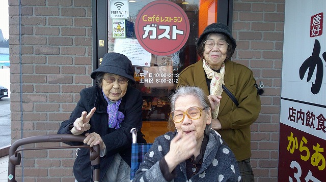 さわやか桜館 外出レク【さわやか桜館】 2024-12-27 2024-12-27 こんにちは、さわやか桜館です🌸 12月26日にご入居者様のご希望でピザを食べにガストに行ってきました😋 幸せそうな顔をご覧ください😊 担当 三浦🐶