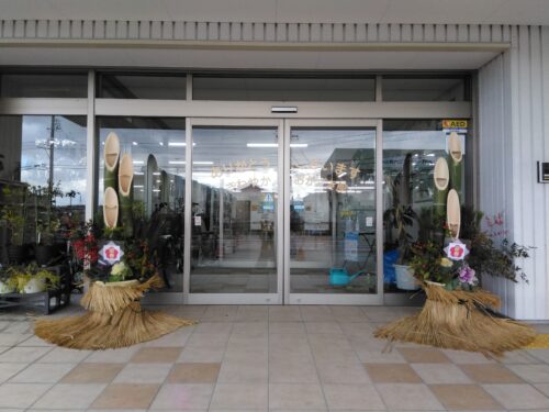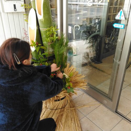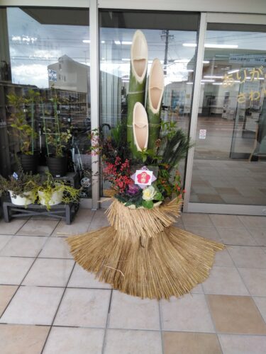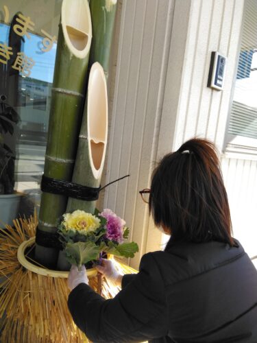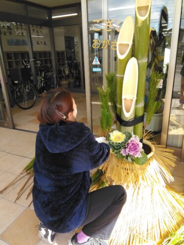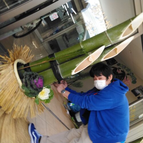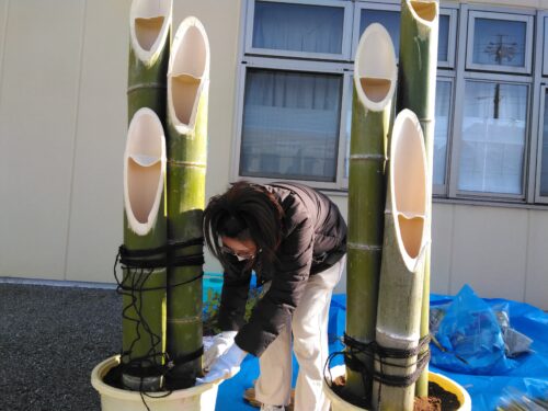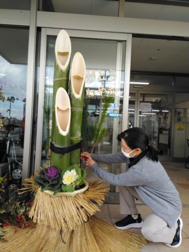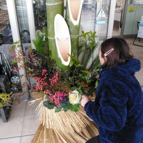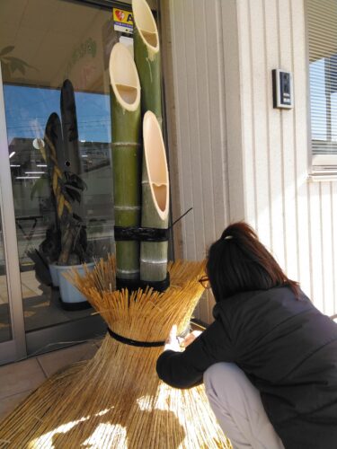 施設玄関前に、門松をお飾りしようと頑張ってつくりましたので