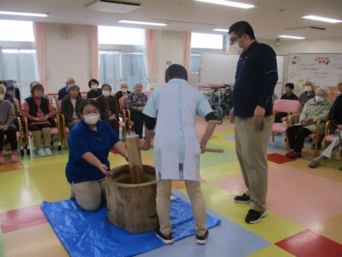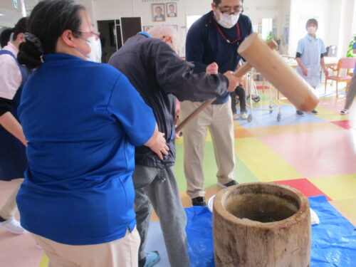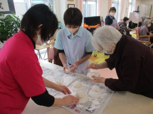 突き立ての餅で、正月飾り用の鏡餅を作りましたほ