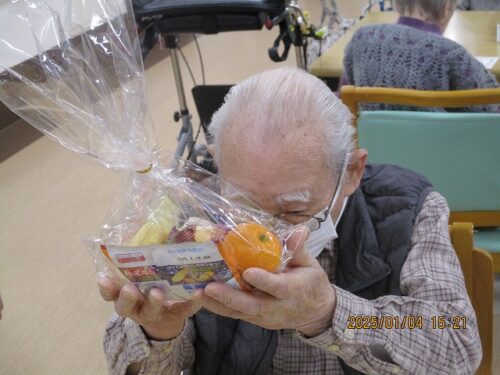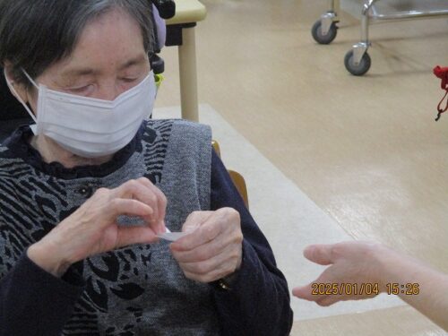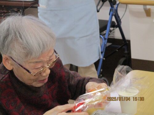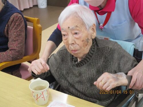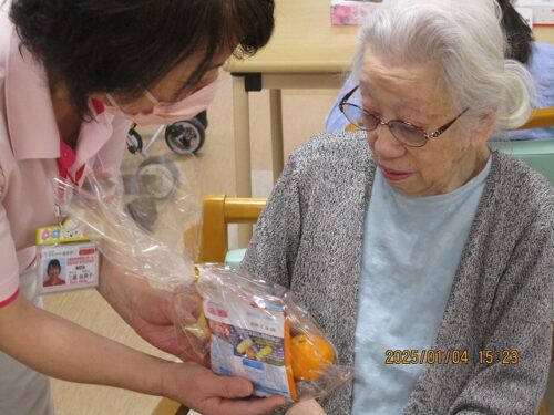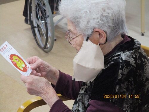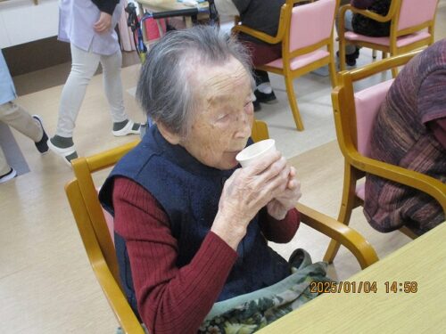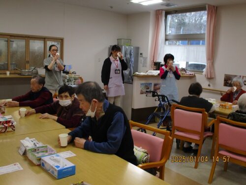 みんなで甘酒を飲みながらお年玉年賀状の抽選会を行ったので、