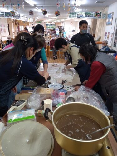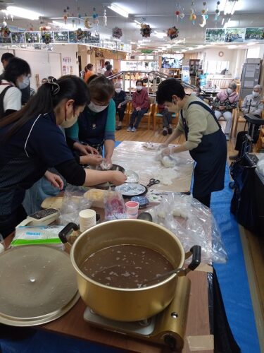 螢風館の職員の皆さんが「酢餅・きなこ餅・ぜんざい」を準備して下さいました。