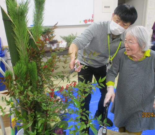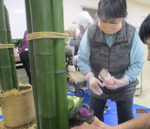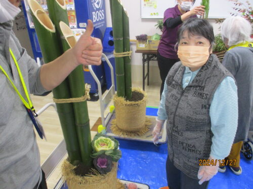 新年を迎えるため、入居者様と職員で玄関の門松🎍作りを致しました。