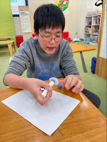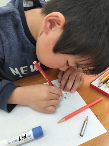 顔とマフラー🧣を描いて雪だるまの完成です♪