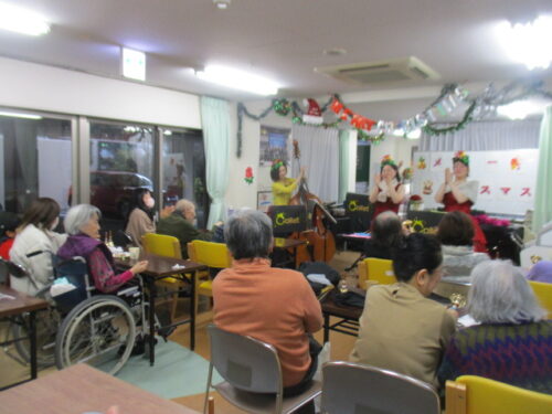 コレットさん(ボランティア)の演奏もあり、参加型のハンドベルの演奏も入居者様とご家族様・地域の方がたとの交流となり本当に素敵でよかったです。感動のあまり涙する入居者様もおられました。