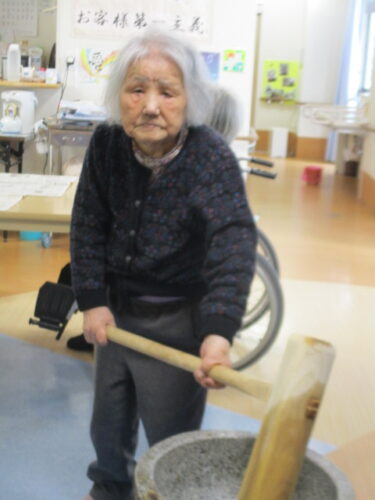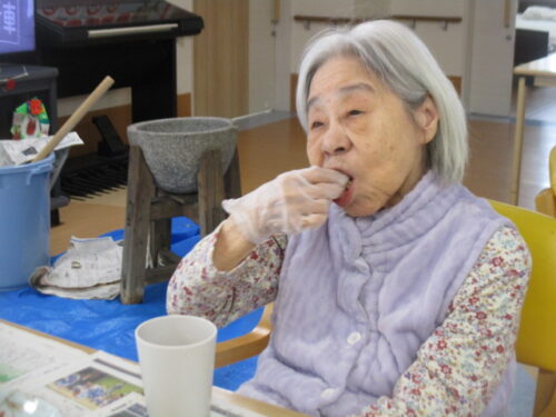 12月27日は杵と臼を使用した本格的な餅つき。のお餅を皆さん大きなお口で美味しそうに食べておられました❤️