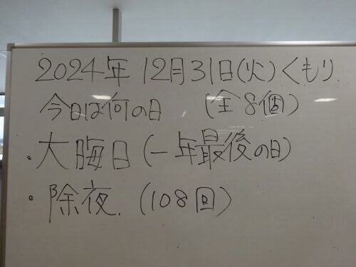 さわやか室蘭弐番館 2階 31日活力朝礼♪ 2025-01-01 2024-12-31 皆様こんにちは♪ 昨日の様子をお届けします 2024年最後の活力朝礼です 頭の体操は大晦日に関する 事柄を学びました 笑顔溢れる一日になります様に☆