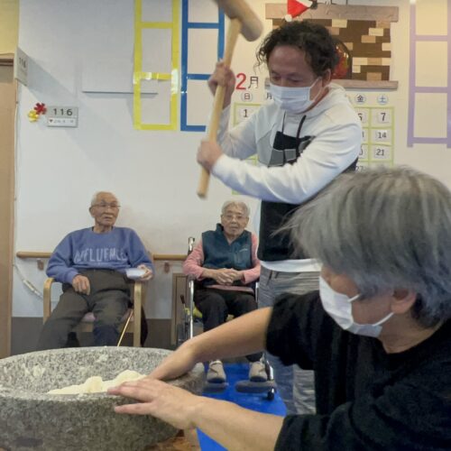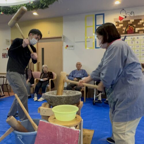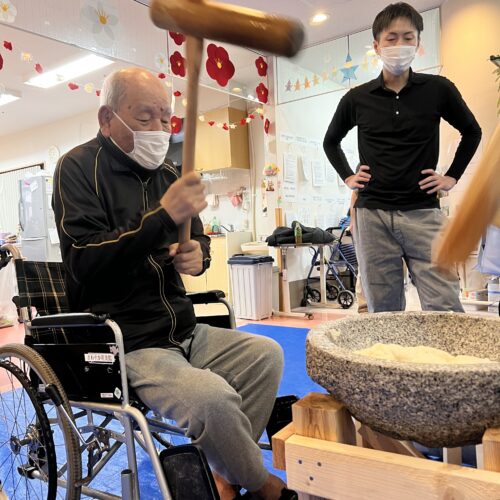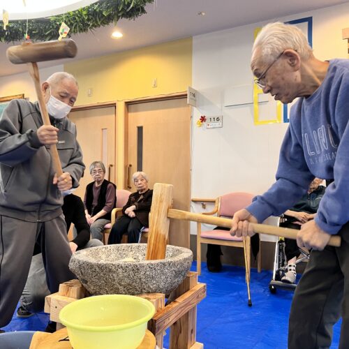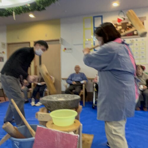 27日に職員と男性入居者らとで餅つきをしました💪🏼✨
