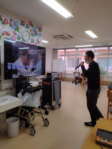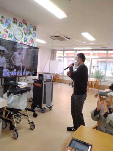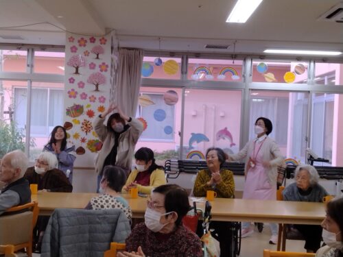 ご利用者様と手を繋いでデイサービスへ誘導😁