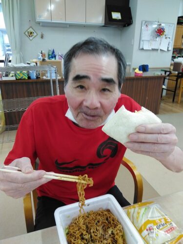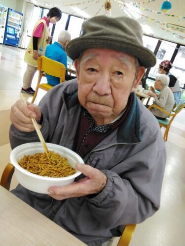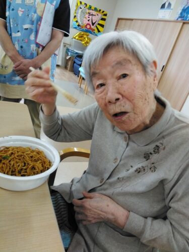 本日は入居者様のリクエストにお答えして、カップ焼きそばを昼食に食べました。