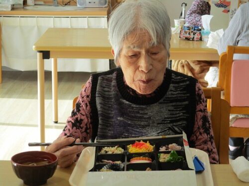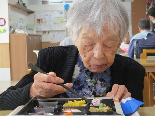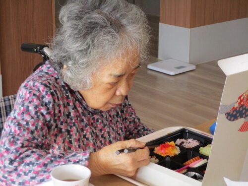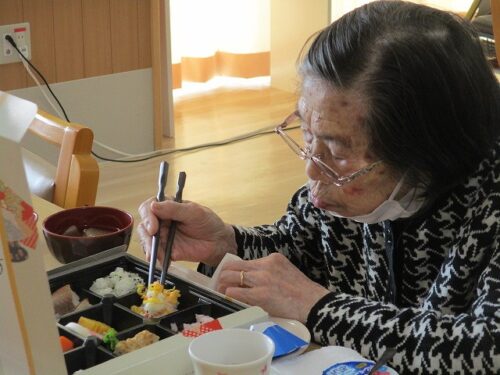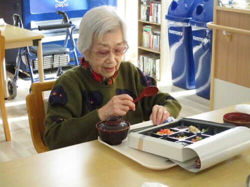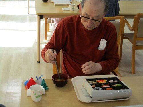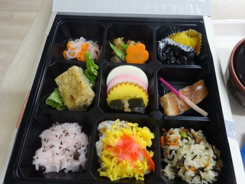 さわやか室蘭弐番館 3階 1日昼食♪ 2025-01-02 2025-01-01 皆様こんにちは♪ 昨日の昼食の様子をお届けします 毎年お正月弁当を提供しております 初夢でみると縁起が良い富士山を添えて 3色ごはん・お雑煮・お節料理です 色鮮やかなお弁当です ご馳走様でした☆