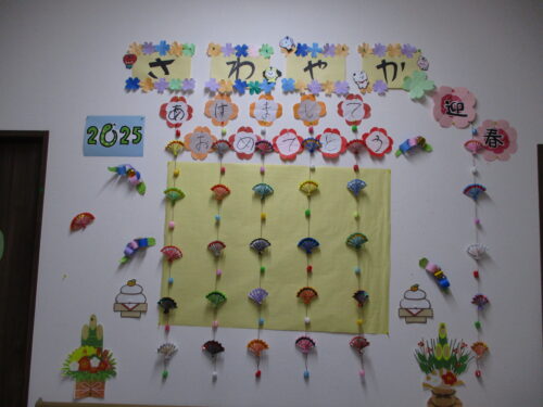 さわやかグループホーム むろらん 明けましておめでとうございます。 2025-01-02 2025-01-02 壁飾りの文字書きをお手伝いして頂き、完成出来ました🎶ありがとうございました。今年もよろしくお願いしますm(__)m
