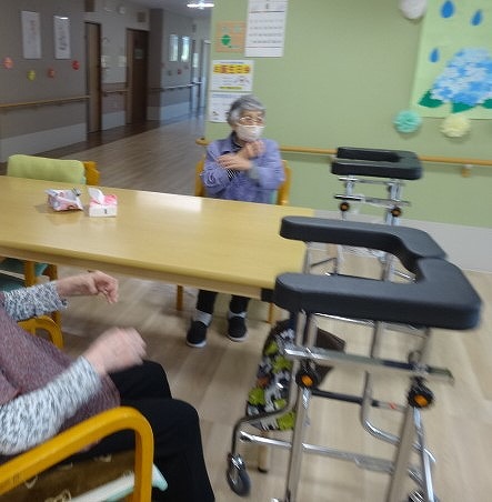 さわやか室蘭弐番館 2階 29日午後の様子(^O^)/ 2024-07-05 2024-07-05 皆様こんにちは 29日の午後の様子をお届けします カラオケ機器に搭載されている プログラムで運動です 画面の動きに合わせて 両手をクロスします