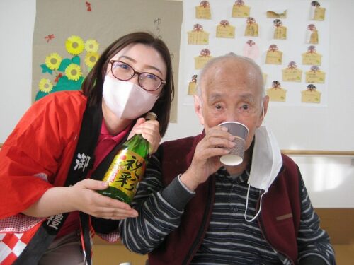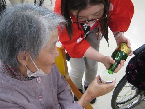 入居者様の無病長寿を願って、少しだけお酒を召し上がっていただきました。