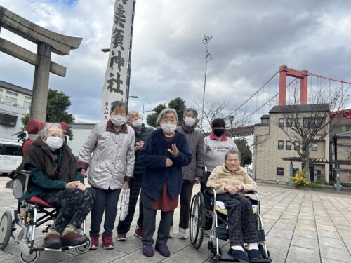 今日の午後から2階、3階のご入居者様と一緒に神社に初詣に行きました!