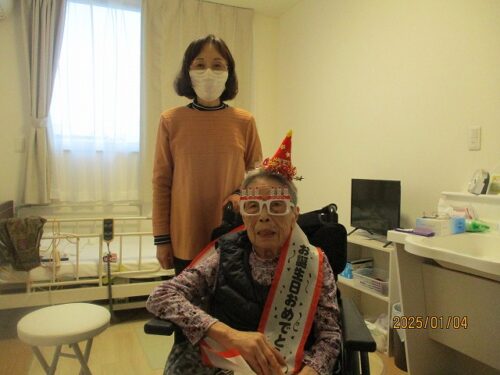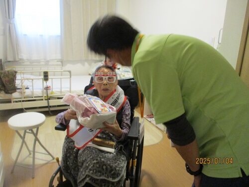 さわやかくまがや館 U様お誕生日🎂 2025-01-06 2025-01-06 1/4にお誕生日の方がいらっしゃいました✨✨ おめでとうございます🎉 丁度突撃隊の時にご家族様もいらっしゃいましたので一緒にお写真撮りました📸 副施設長よりお誕生日プレゼントです(●´ω`●) お誕生日仮装取って記念撮影🎶 投稿者:猫編集長🐈