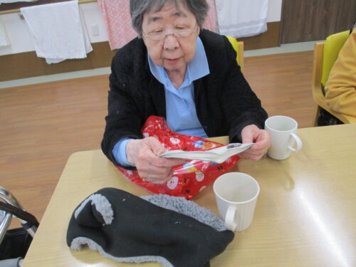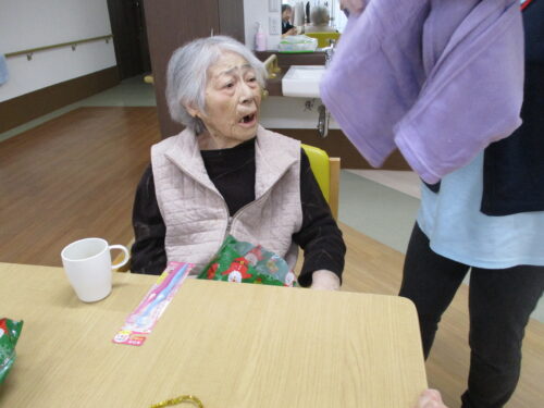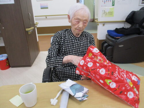 さわやかグループホーム むろらん 遅くなりましたが、、 2025-01-08 2025-01-08 色々あり、年越してしまいましたが、遅めのクリスマスのプレゼントさせていただきました! ご家族様とのビンゴ大会も予定していましたが、中止になってしまったので来年こそはみなさんでお祝いしたいですね!
