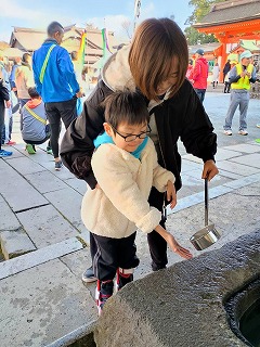 僕は、御手水で手を洗って、冷たい水にビックリ!!