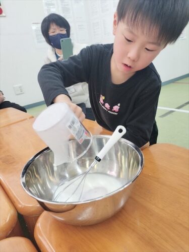 ホットケーキミックスを入れてよく混ぜたら準備完了です😊