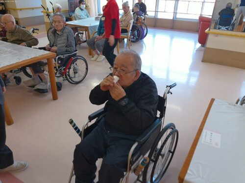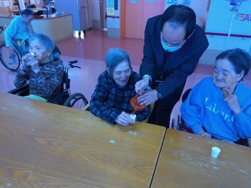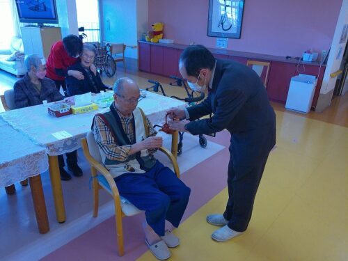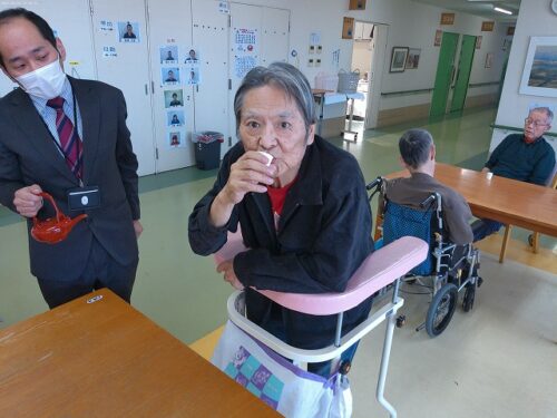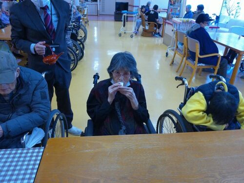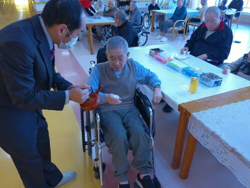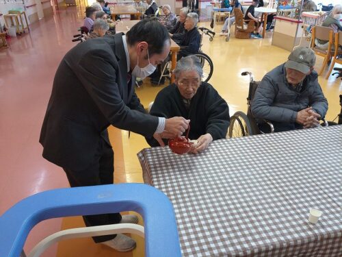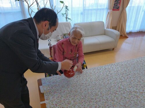 1年の始まりの元日は、施設長・副施設長が各フロアで入居者様に新年の挨拶をしました。