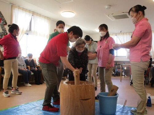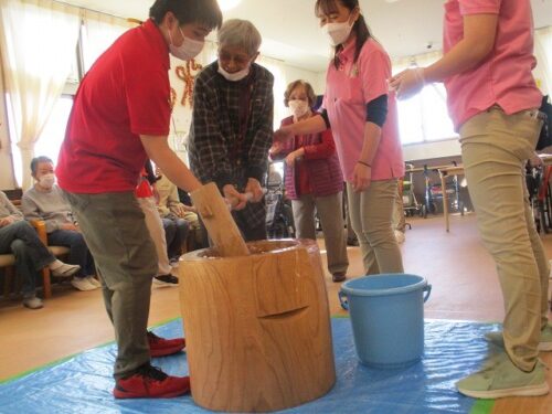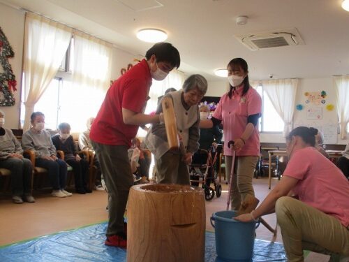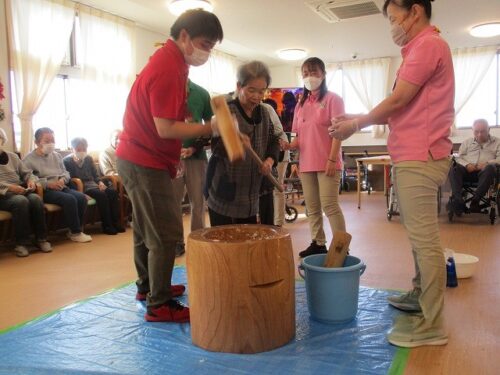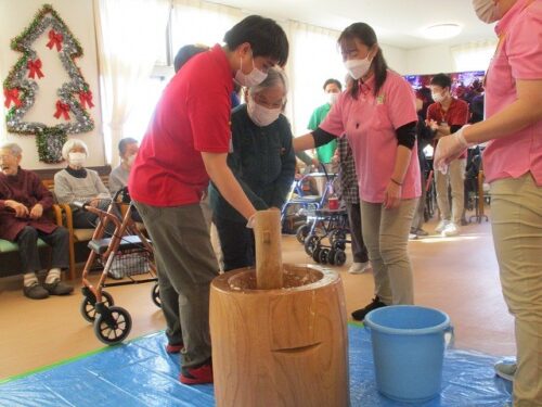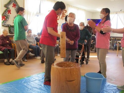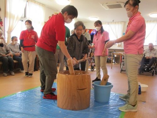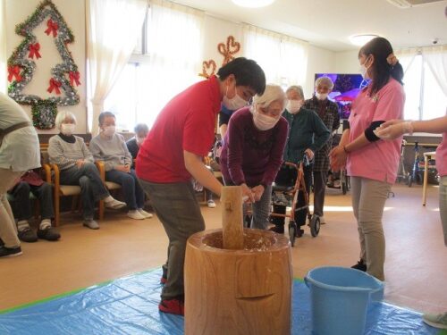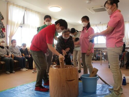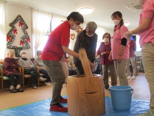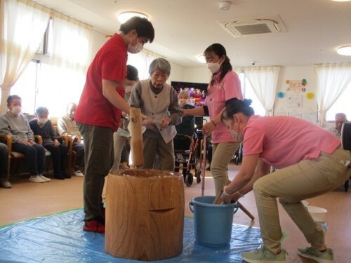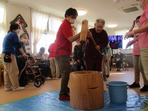 本日はこちらのご入居者様方が、お餅をついている様子です✨