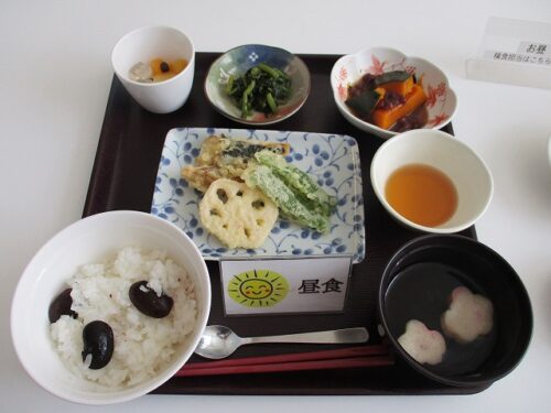 黒豆おこわ・天婦羅盛り合わせ・天つゆ