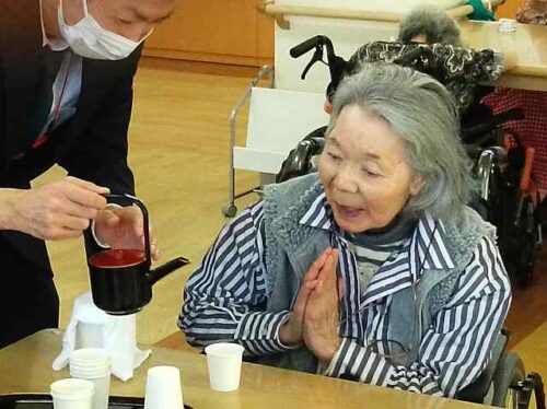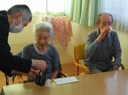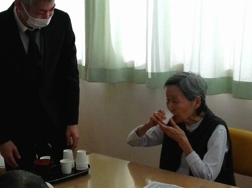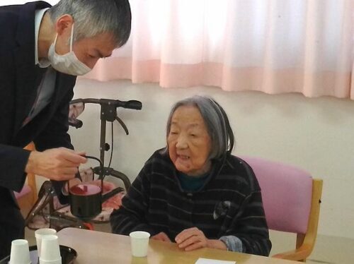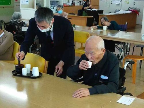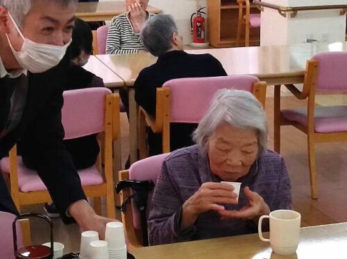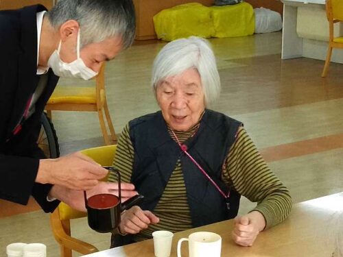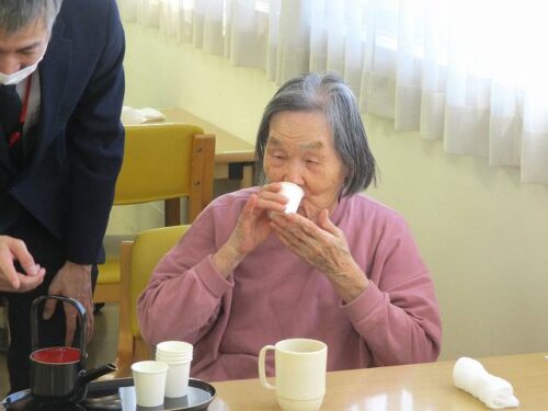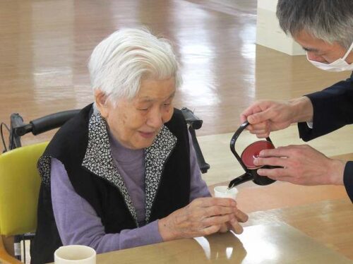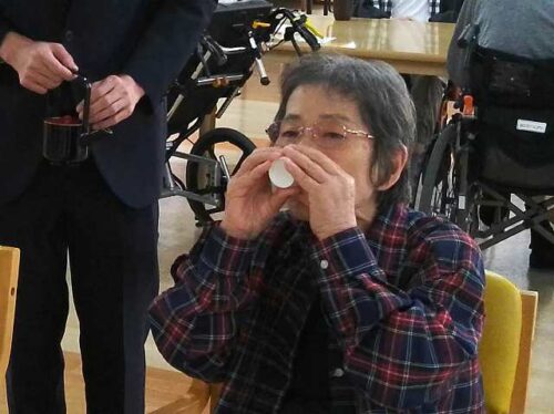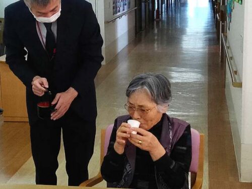 ご入居者様一人一人にお屠蘇🍶を振舞わせて頂きました