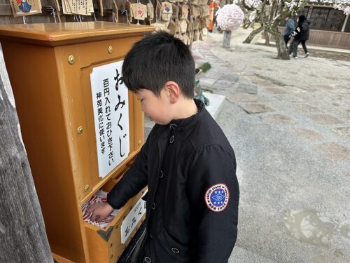 参拝した後には、かんだ館を代表して、おみくじを引いてもらいました。