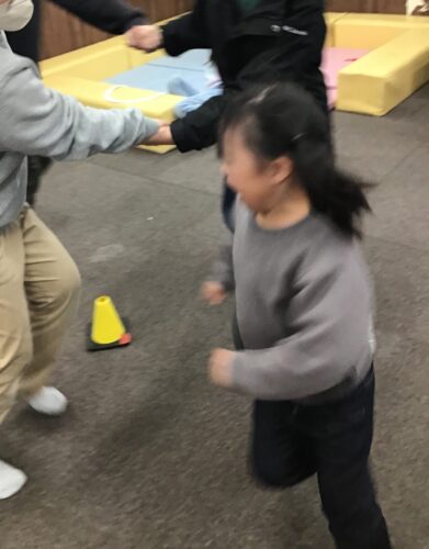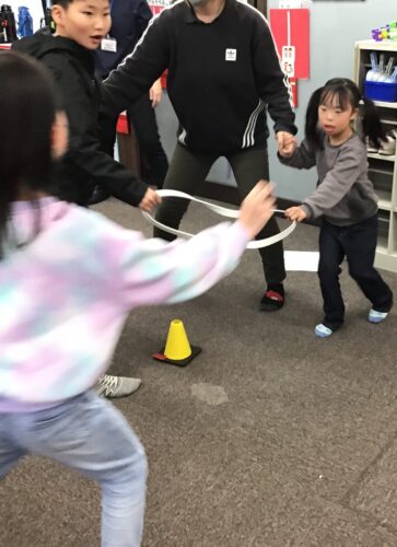 今回の活動は、手つなぎ鬼としっぽ取りゲームをアレンジした