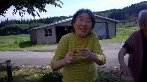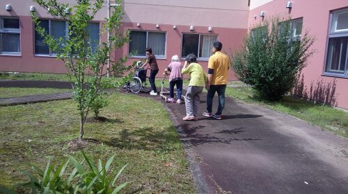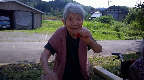 3階のご入居者様は日光浴に来られ、苺を収穫していました。