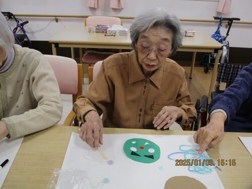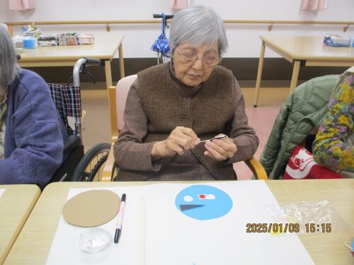 段ボールに貼り付け、鬼の顔を貼ります👹