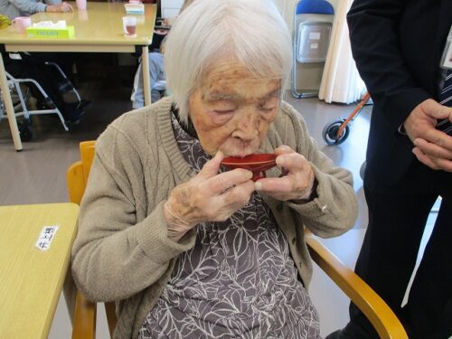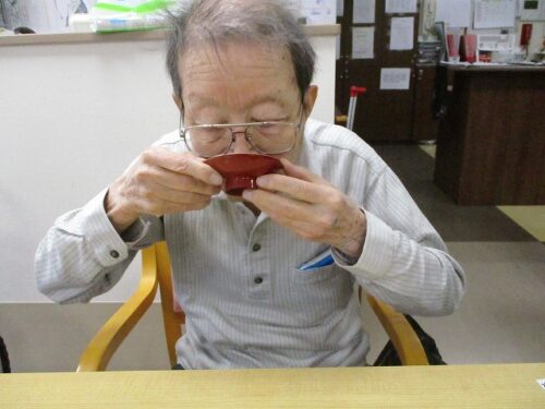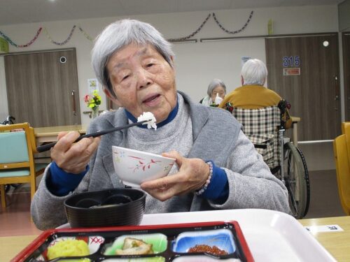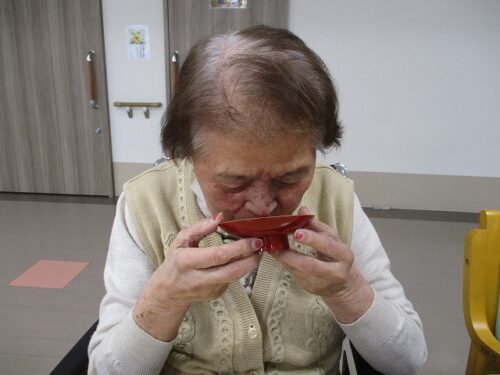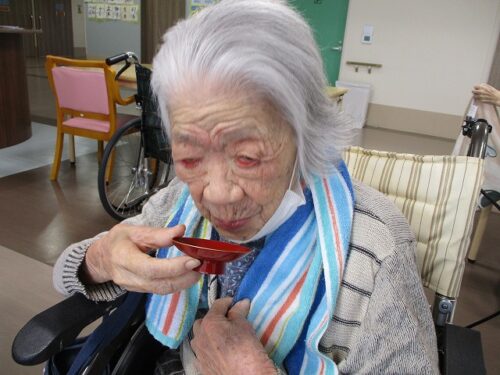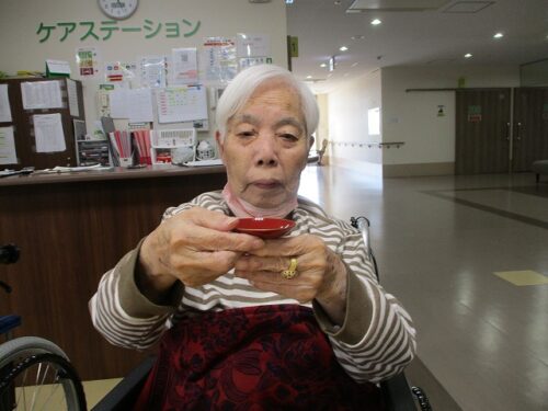 新年の昼にはおせち料理とお屠蘇が振舞われました。