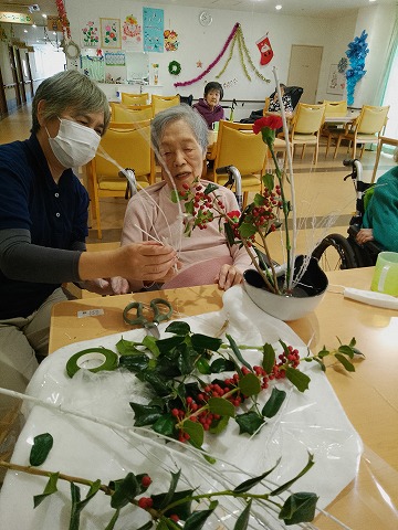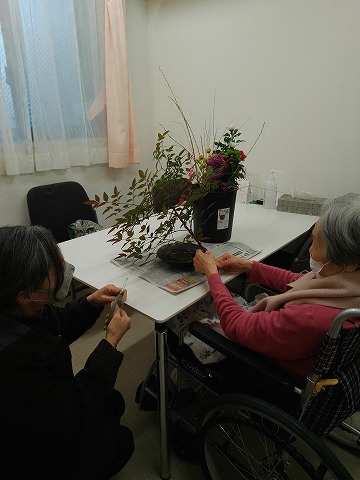 さわやかさがみはら館 華道❁ (さがみはら館) 2025-01-12 2025-01-12 こんにちは! さがみはら館です☺ 定期的に お花を生けていただいております(*^-^*) ケアマネと・・ 時には、娘様とも・・ 素敵な親子です💕 (西島)