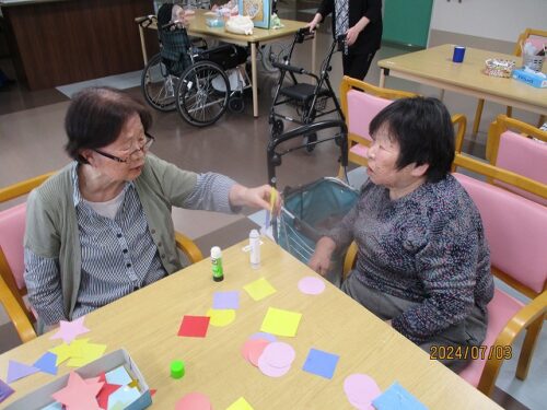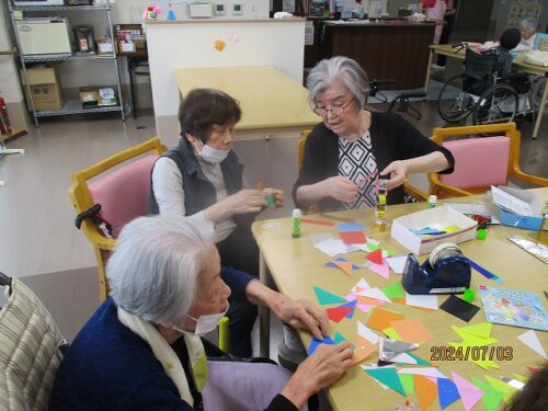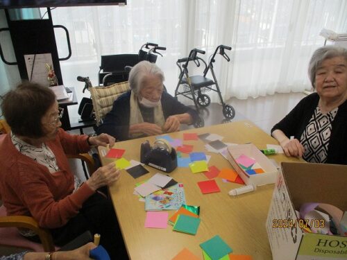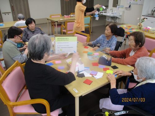 短冊に書いておられる時は皆様とても真剣で熱心に取り組んでおられました。
