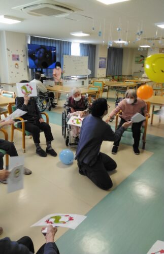 本日は手作りの羽子板で風船を突いてい遊んでみました👍👍