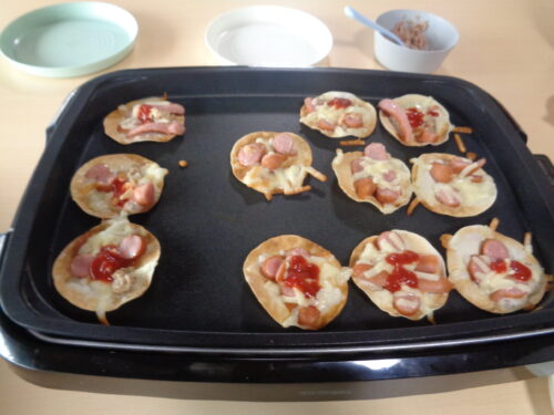 さわやか愛の家 おおかわ館 ミニピザ作り【愛の家おおかわ館】 2025-01-17 2025-01-15 こんにちは✨ さわやか愛の家おおかわ館です😍 今回は「ミニピザ作り」に挑戦しました✊ 餃子の皮の上にチーズやウィンナーをのせます‼ 「パリパリしてて美味しい‼」や「また活動でしたい」という声が 聞かれ、大好評でした😻