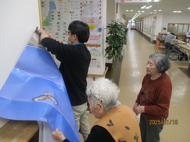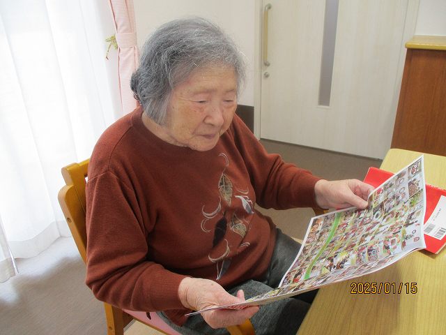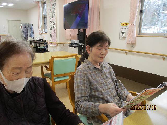 今日は1月号のさわやかマガジン「さくらのもりトレンディー」をお渡しいたしました。皆様自分が冊子に載っているところを探したり、行事を思い出したり楽しんで頂きました。