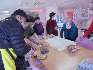 買ったパンの袋詰めを職員もお手伝い☺