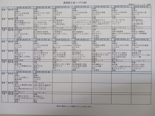 さわやかいずみ館 1月後半の献立表 さわやかいずみ館 2025-01-13 2025-01-16 1月15日から31日の 献立表です🍴 1月15日(水) フラワーアレンジメント 1月18日(土) 訪問理美容 1月26日(日) 誕生会 予定していま😊 ※変更等ある場合がございます。ご了承ください。