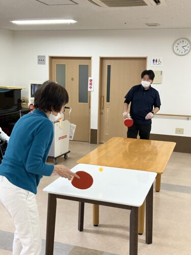 昔、卓球をされていた入居者様もおられ、徐々に勘を取り戻され、